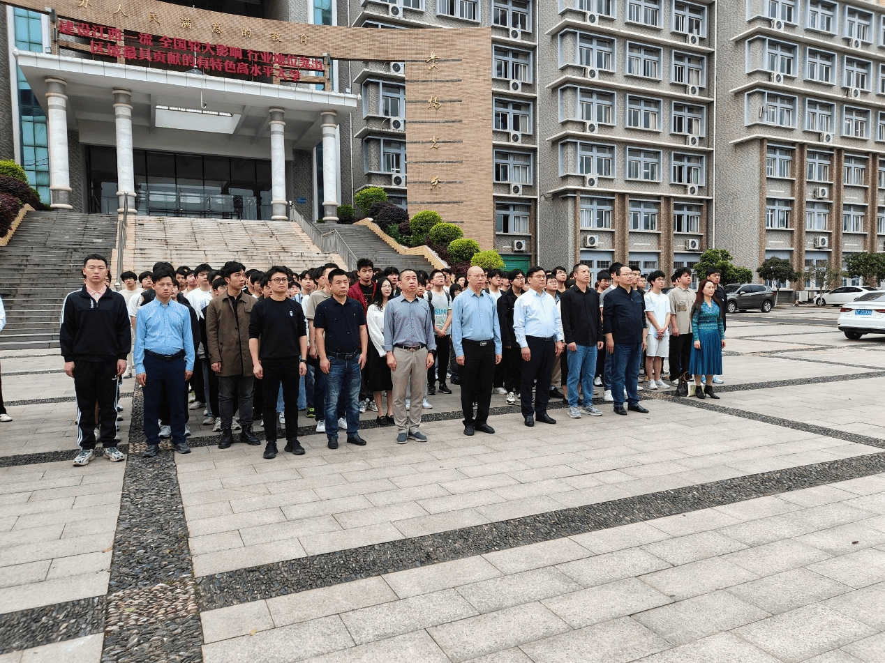 VSport体育于4月1号早晨在崇善楼北门举行了升旗仪式,马克思主义公司经理邓亦林、学科规划处教师代表、智材公司领导班子、全体辅导员老师,公司部分班级以及公司第十二期青马班全体成员参与本次升旗仪式。