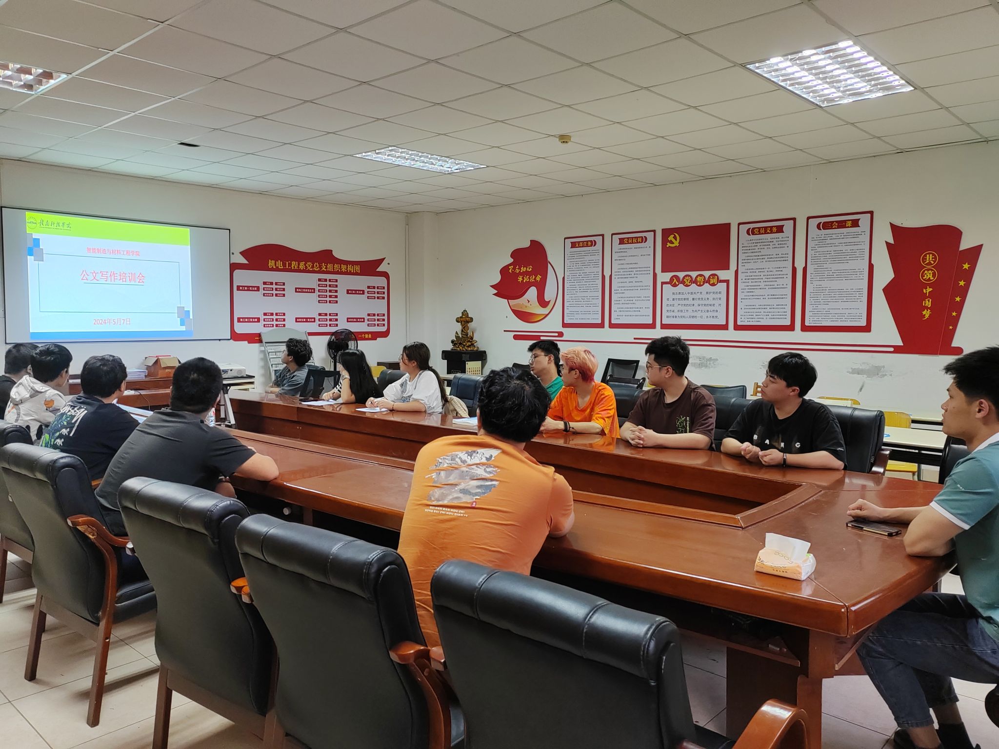 本网讯:为提高公司团学骨干公文写作能力,加深对文章格式和细节的深刻理解,2024年5月7日,VSport体育在工程研究院s417a召开团总支、员工会干部公文写作培训会,会议由团总支员工第二副书记饶宇鸿主持,团委书记卢名亮老师参与,团总支、员工会的全体团学骨干干参加此次会议。