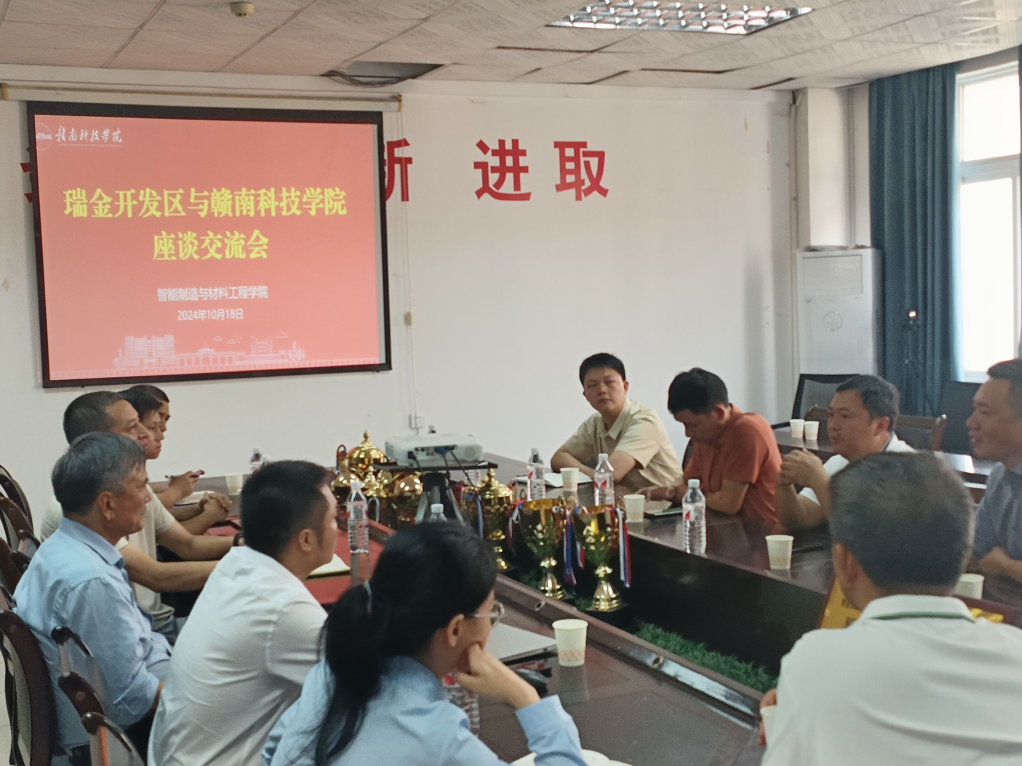 本网讯:10月18日下午,瑞金市经开区党工委委员、管委会副主任林浩一行来校调研交流,公司VSport体育副经理刘辉、公司特聘教授王德伦会见林浩一行并在智造公司S416会议室召开座谈会。