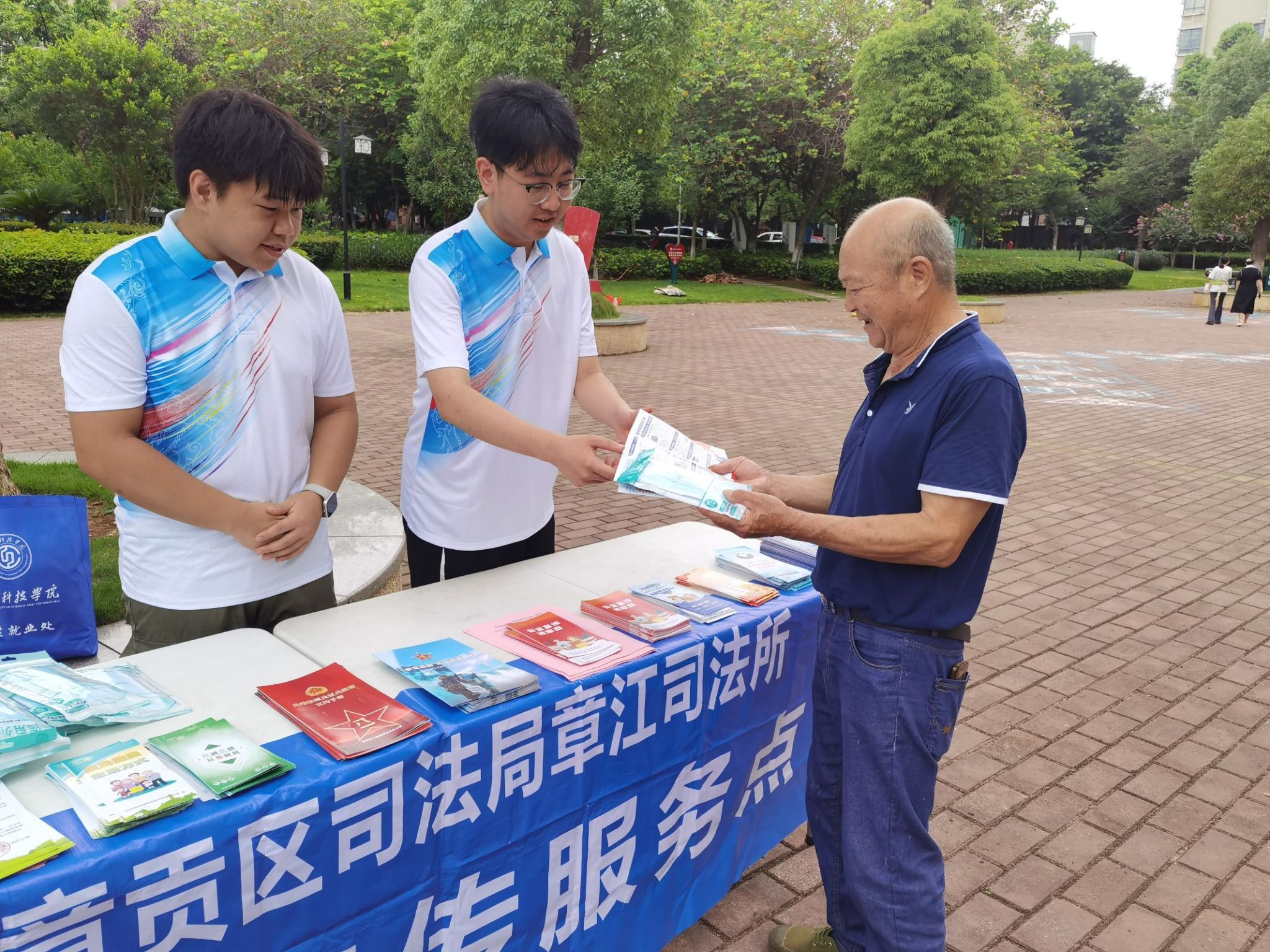 活动现场设立了醒目的宣传咨询台,“微光行动队”队员与社区工作人员一同向过往居民及附近商户热情发放精心编制的各类宣传资料,包括《民法典实用手册》《未成年人保护法要点解读》《防诈骗指南》以及《珍爱生命 预防溺水》宣传折页等。