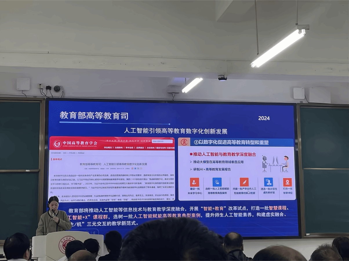 此外,邹艳华还介绍了AI技术在教学实践中的具体应用,如智能辅导、个性化学习路径规划等,使在场师生对人工智能赋能教育有了更直观和深刻的理解。