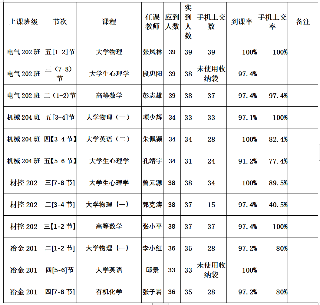 一、第十六周抽查到课率情况通报