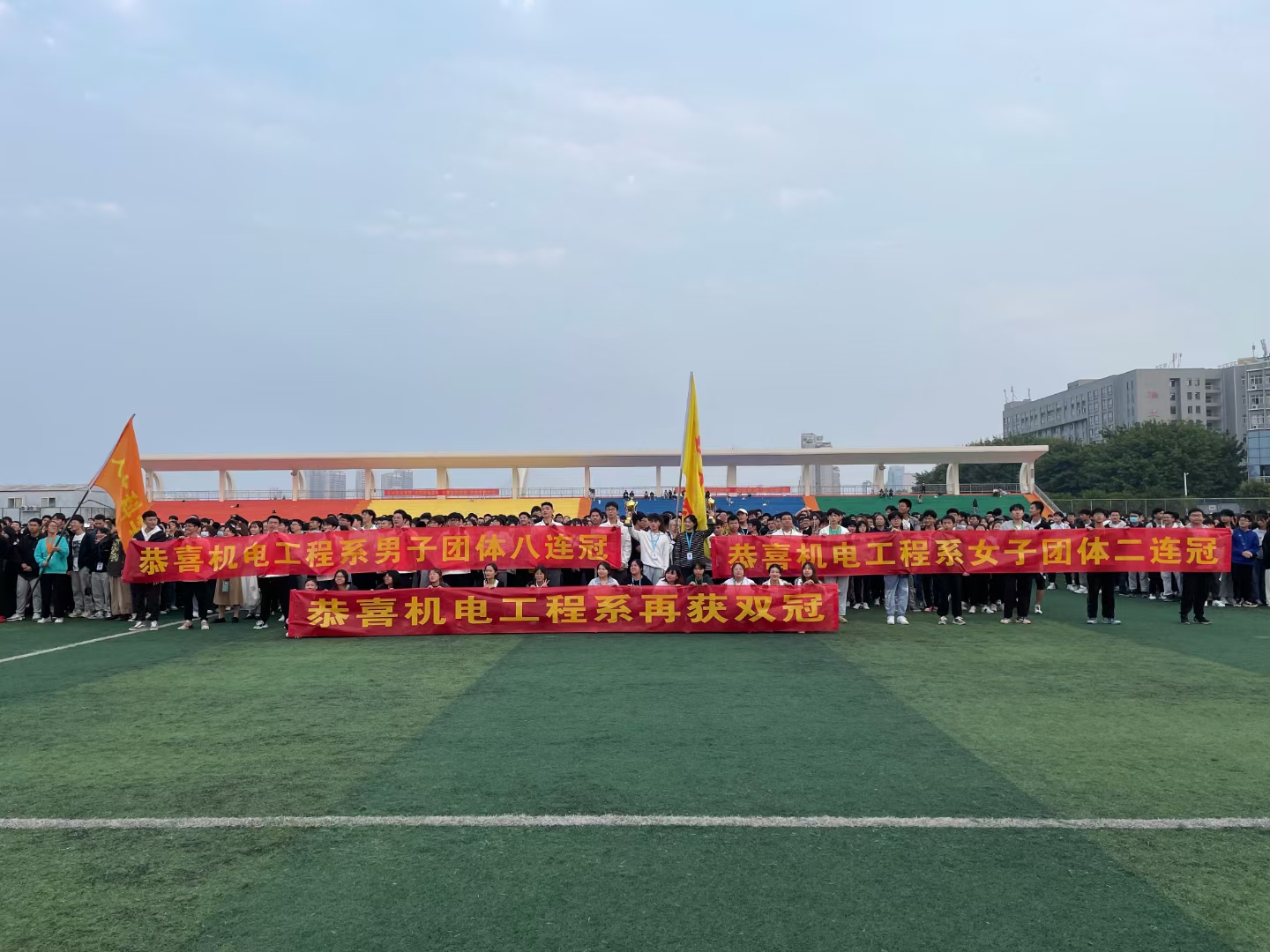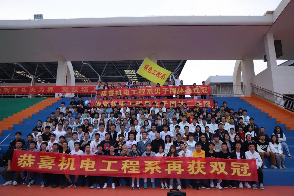 本网讯:2021年10月29至30日,VSport(江西理工大学应用科学公司)第十九届运动会隆重举行。在本次运动会,机电工程系再创佳绩,男子团体蝉联八连冠,女子团体成功卫冕,荣获二连冠,男女团体再获双冠!