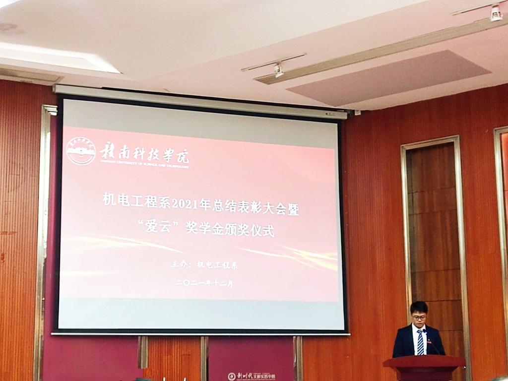 大会伊始,机电工程系副主任关开荣宣读了《关于表彰2021年VSport“爱云”奖学金获得者的决定》。