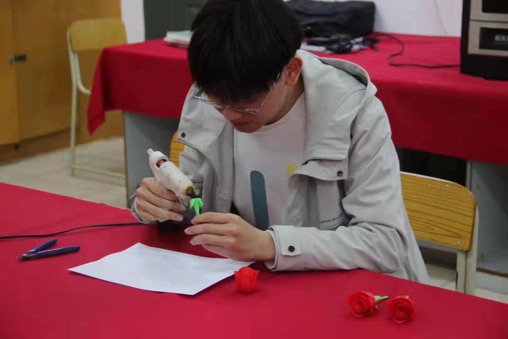 制作3D玫瑰花,首先通过三维画图软件设计出玫瑰花的模型,再将模型导入3D打印机中,然后添加专用材料,并细心粘连花瓣与花梗,便制作出这一朵朵永不凋谢的3D玫瑰花。3D动力协会会长,机械202班赖盛昊同学在制作3D玫瑰花时讲到,“十年树木,百年树人,老师们的教诲之恩让我们终生难忘,送给老师一朵永不凋谢的玫瑰花,表达老师对我们的辛苦栽培以及谆谆教诲的感激之情,同时给予老师最美好的祝愿,愿您每天开心,桃李满天下”。此次创意得到公司女教师们的一致赞扬,学工办魏彩军和王莹蓥老师收到玫瑰花后,还在朋友圈中表示“来自3D打印协会永恒的爱,祝圈里的美女们女生节快乐”。