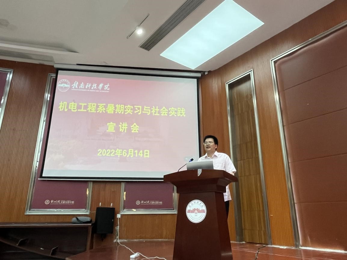 本网讯:6月14日,机电工程系在逸豪学术报告厅举办暑期实习与社会实践宣讲会,本次宣讲会共吸引格力电器(赣州)有限公司、孚能科技股份有限公司、晨光稀土新材料有限公司等12家优质企业参加,系主任刘辉、副主任关开荣、教师代表以及机电工程系19级300余名员工参加了宣讲会,此次宣讲会由关开荣主持。