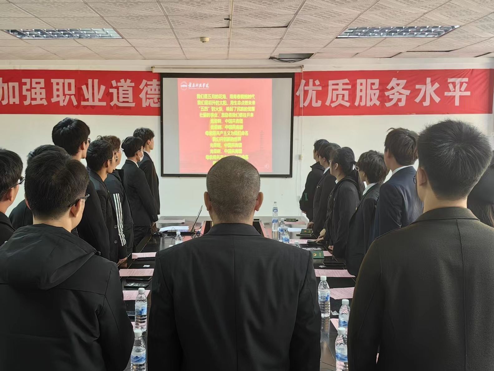入团仪式开始,全体人员起立奏唱《中华人民共和国国歌》,随后由卢名亮宣布2023年新团员名单,老团员为新团员颁发团员证、佩戴团徽。