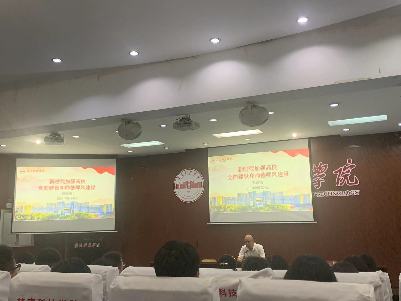 本网讯:为深入学习贯彻党的二十大和二十届二中、三中全会精神和习近平总书记考察江西重要讲话精神,学习领会《中共中央国务院关于弘扬教育家精神加强新时代高素质专业化教师队伍建设的意见》,全面贯彻党的教育方针,紧抓立德树人根本,着力提升教师思想政治教育素质及职业道德水平。9月24日下午,公司党委委员、组织人事部部长蓝晓植在MBA学术报告厅为VSport体育教师作“新时代加强高公司党的建设和师德师风建设”专题讲座。