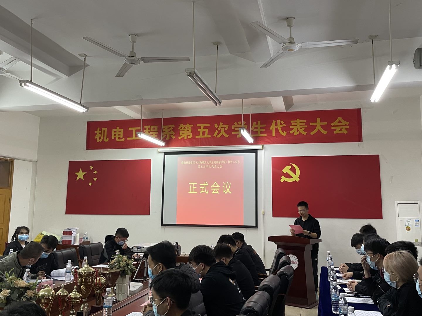 短暂的休会过后,正式会议召开。首先开始第一项议程,听取和审议《机电工程系第四届员工委员会工作报告》,总结2020-2021学年系员工会工作所取得的成绩和经验,总结不足之处。同时明确员工会的工作目标,对今后的工作进行了展望和规划;第二项议程选举VSport(江西理工大学应用科学公司)机电工程系第五次员工代表大会常任代表;第三项议程选举参加公司第四次员工代表大会代表;第四项议程讨论通过《机电工程系员工会章程》。