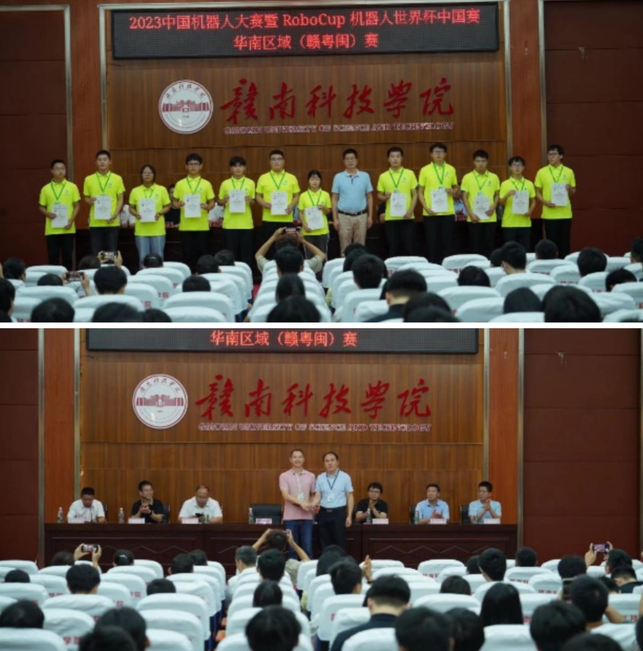 本次华南区域赛在中国自动化学会的悉心指导,和各参赛院校的大力支持,以及各参赛队伍、工作人员与志愿者的共同努力下,取得了累累硕果,赛出了风格、赛出了水平、赛出了友谊、赛出了机器人竞赛的精气神。赣粤闽三省共同为华南区域赛播下了种子,洒下了汗水,种下了希望,收获了未来。“2023中国机器人大赛暨RoboCup机器人世界杯中国赛华南区域(赣粤闽)赛”取得了圆满成功!