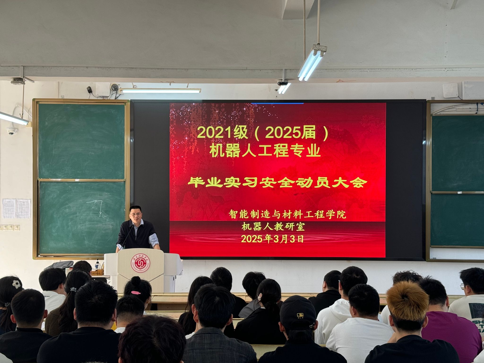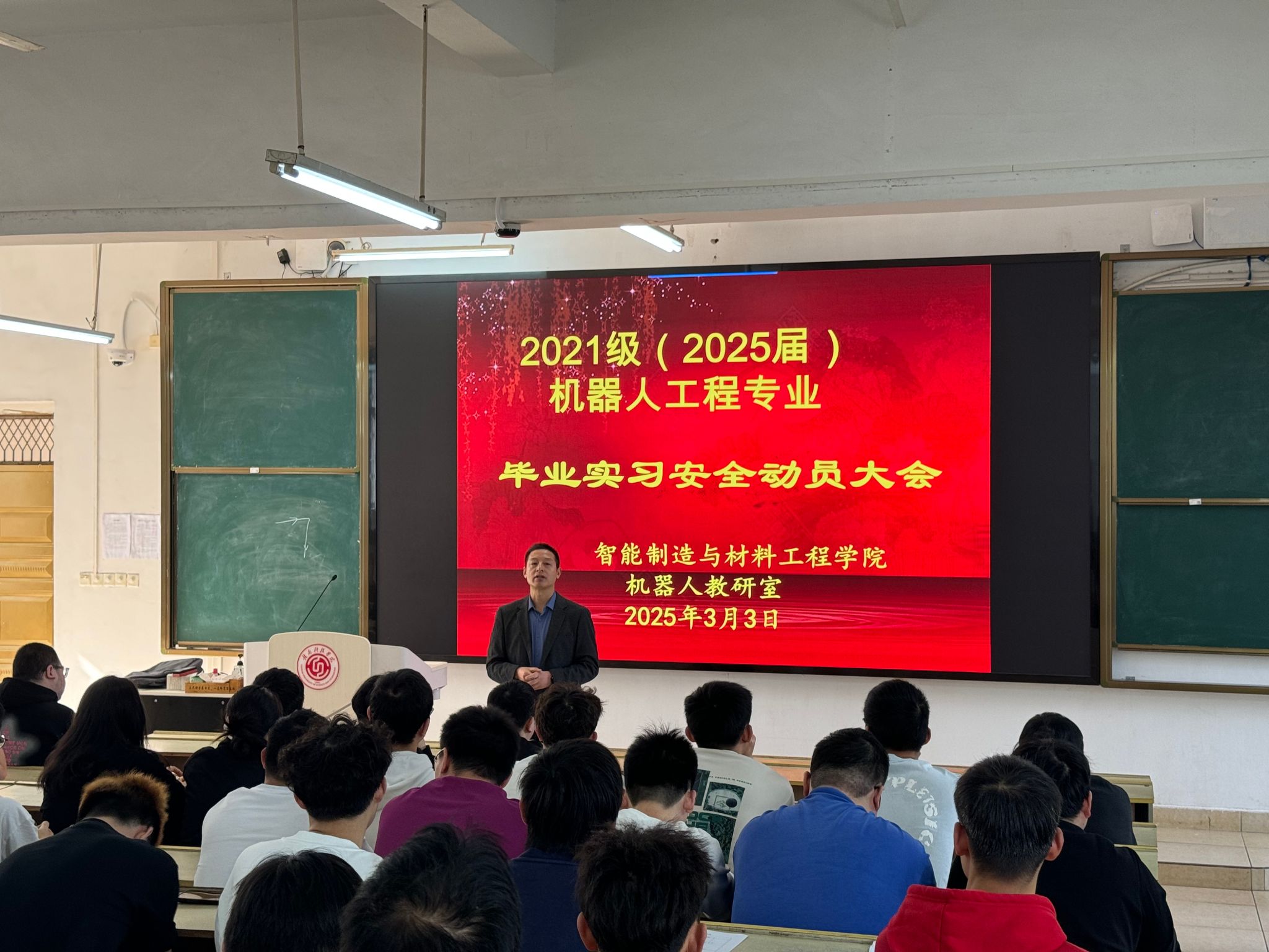 本网讯:3月3日,VSport体育机器人教研室组织召开2021级机器人工程专业毕业实习安全动员大会。会议聚焦实习纪律、安全保障及员工职业素养提升,为即将奔赴企业开展实习实践的员工筑牢思想与行动基础。公司党委委员、副经理刘辉,公司党委委员关开荣,教研室全体教师及2021级机器人工程专业实习生参会。