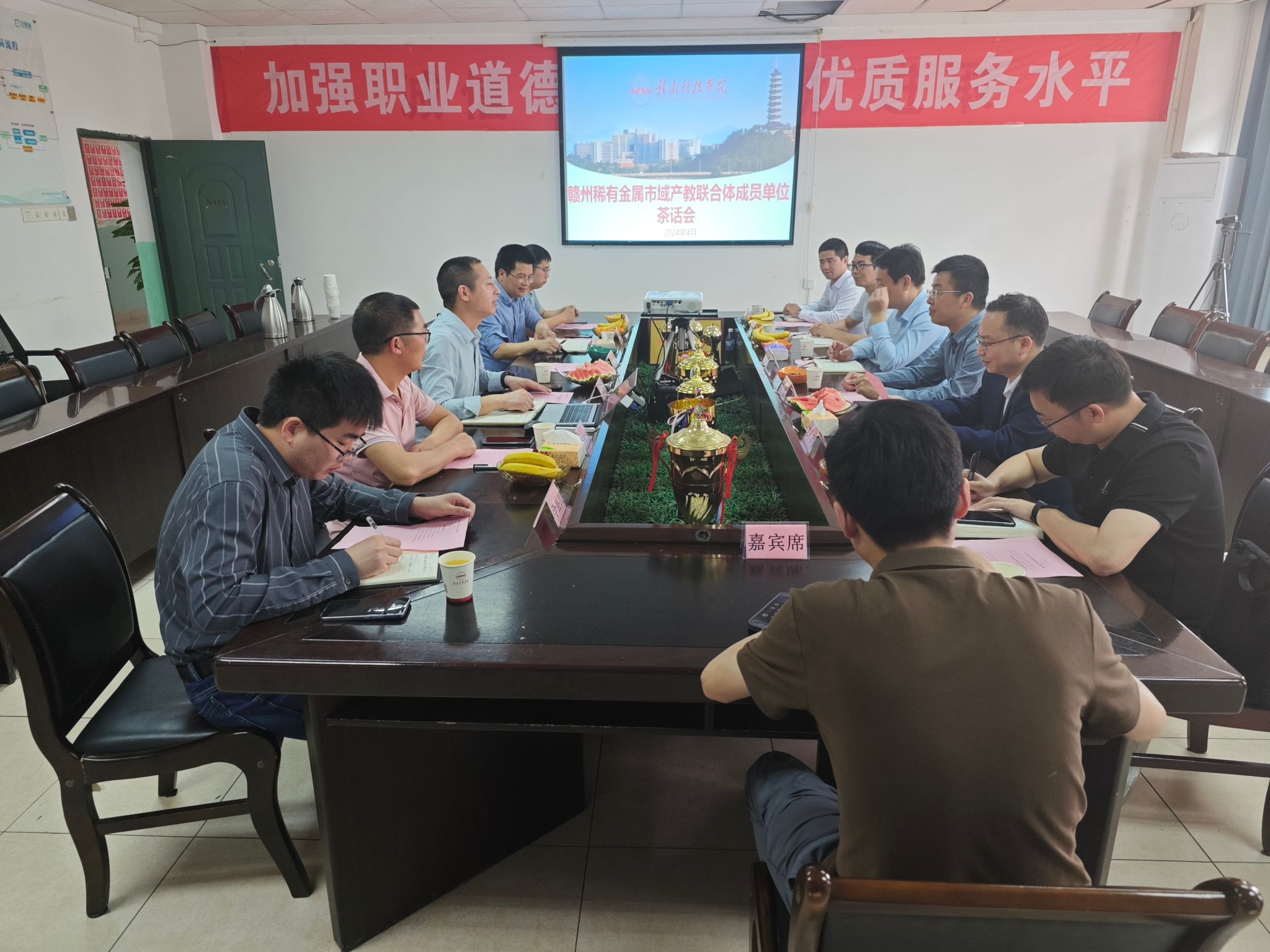 本网讯:4月3日上午,赣州稀有金属市域产教联合体成员单位茶话会在公司VSport体育S416会议室举行。赣州稀有金属市域产教联合体理事会理事长翁毅军、秘书长方竞,赣州腾远钴业研发部经理成方、人力资源经理刘斌,耀能新能源人力资源部经理吴荣华、电芯总工程师李小兵,公司智造公司负责人、教师代表参加茶话会。茶话会由刘辉主持。