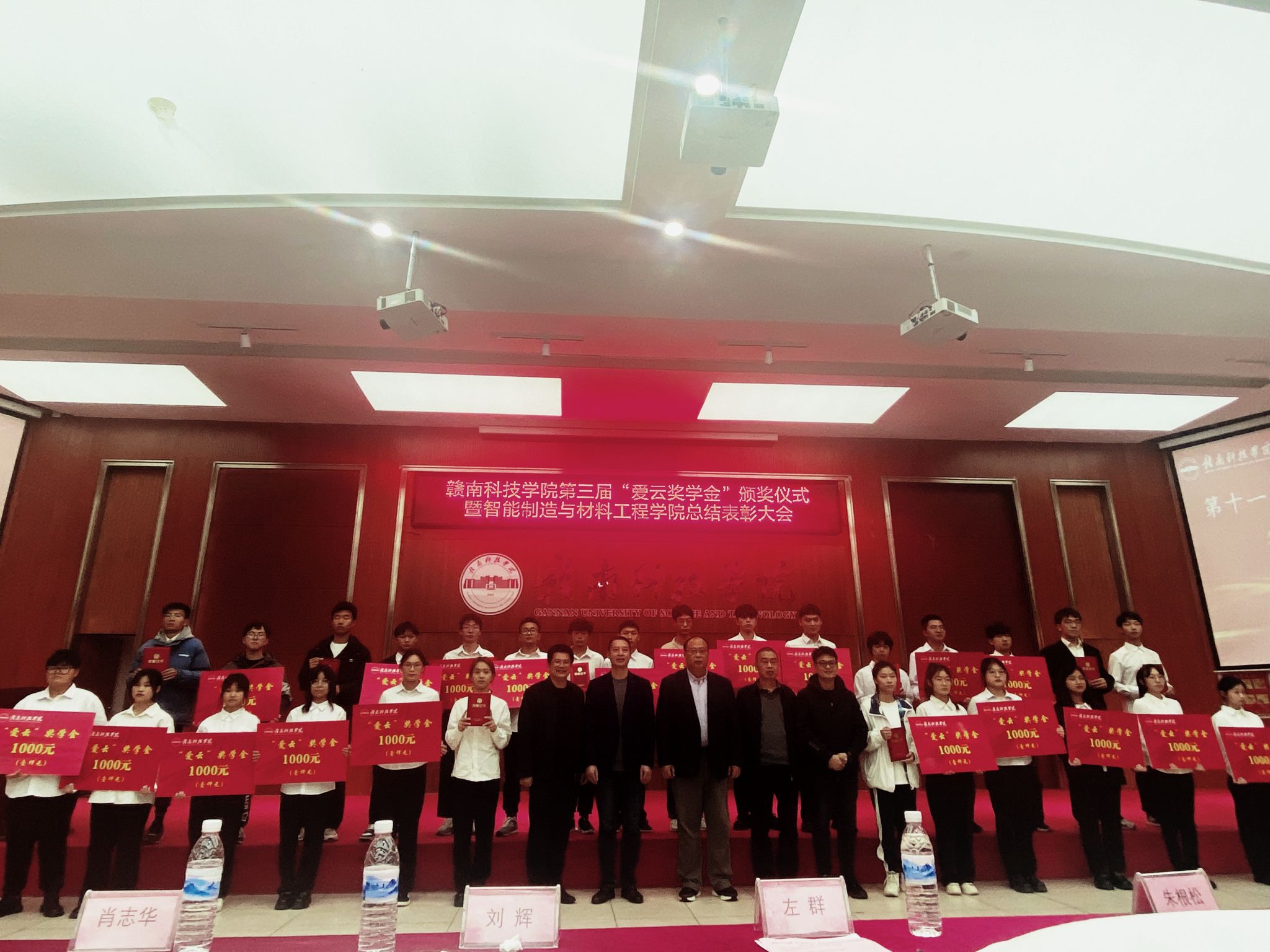 左群副董事长为20名第三届“爱云奖学金”获奖者颁奖,“爱云奖学金”旨在于奖励和资助乙方学习成绩优异、自强自立、富有开拓创新精神的贫困生学子,主要针对公司VSport体育(机电工程系)在校员工,共设立五年,每年两万元,合计十万元奖金。
