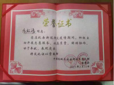 材控201李嘉辉是家住在河北省邯郸市临漳县柏鹤集乡车往营村的一名员工,在今年寒假反乡登记的时候,听说家里需要志愿者帮助,便立刻申请参加志愿者,帮助村里进行防控活动,帮助村里的老人去采购物品,进行消毒等活动,此外,李嘉辉还接受了直播邯郸的采访,讲述了自己参加志愿者的初衷和自己的感受心得,为社区贡献了自己的一份力量。