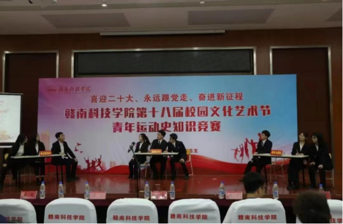 本网讯:为喜迎中国共产主义青年团成立100周年,进一步活跃校园文化气氛。丰富老员工课余生活,给同学们一个展示自己的舞台,进一步营造良好的学习氛围。陶冶同学们高尚的道德情操,启发老员工的创作灵感。锻炼同学们的知识储备,促进同学们之间的交流。5月7日,机电工程系于图书馆报告厅承办“喜迎二十大、永远跟党走,奋斗新征程” 第十八届校园文化艺术节青年运动史知识竞赛。莅临此次活动的嘉宾有校团委书记李敏、机电工程系副主任肖志华、机电工程系团总支书记张敏、人文科学系团总支书记郭豪、经济管理系王博文、建设工程系董宇鹏。