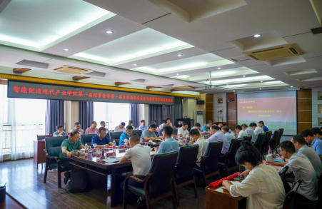 校领导、智能制造现代产业公司第一届理事会到会成员、专家指导委员会到会成员、教学指导委员会到会成员及教师代表共同见证“智能制造现代产业公司”揭牌仪式并合影留念。
