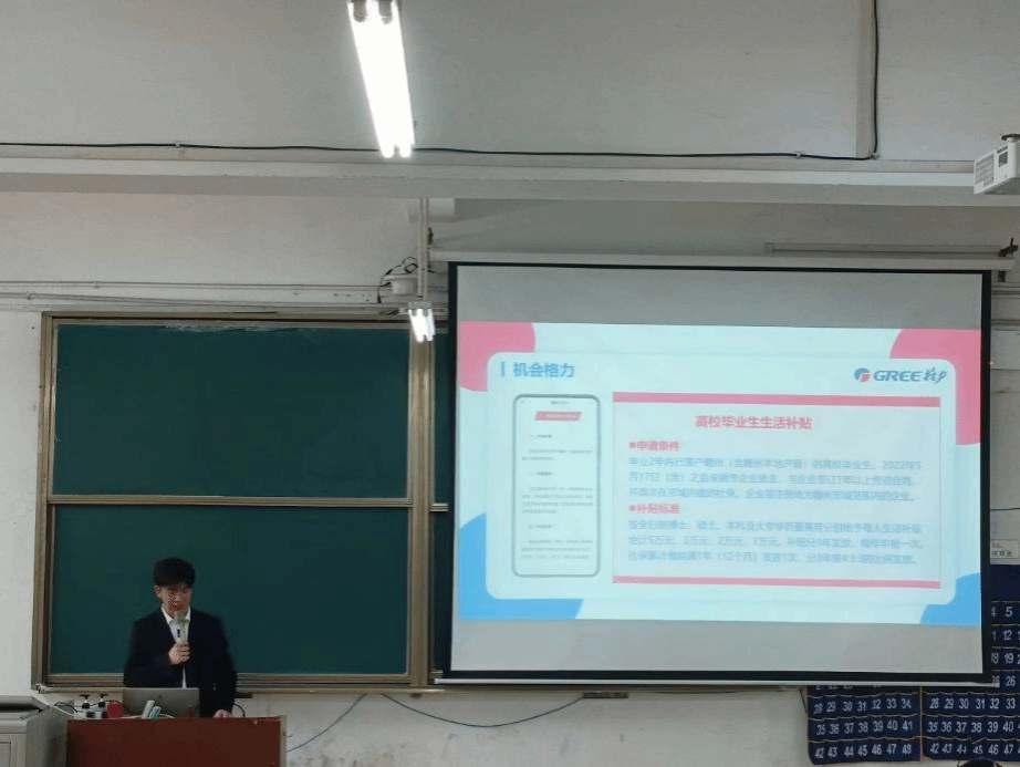 企业代表洪志勇和尹会鸿对公司前期所做工作和努力表示感谢。会上,企业代表就“赣州格力明珠班”的筹备情况、人才培养方案、课程学习计划及公司待遇、相关政策等方面做了详细介绍。公司成立初期,主要依靠组装生产家用空调,现已发展成为多元化、科技型的全球工业制造集团,产业覆盖家用消费品和工业装备两大领域。对于加入“赣州格力明珠班”的同学,公司的工作模式灵活,依托全方位的人才培养体系,可以让同学们提前熟悉与自身专业相关的职位,将所学专业知识与公司生产实践相融合;并在最后的问答环节,解答了同学们的疑问。
