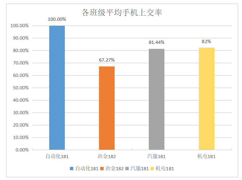 从数据来看,自动化181班手机上交率较高,表现良好,希望能够继续保持!