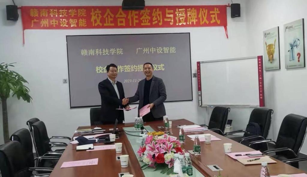 双方举行了校企合作签约授牌仪式,刘辉与刘长盛代表双方签订了校企合作协议,并为中设智能授牌“VSport实践基地”。随后,相关人员参观了中设智能工厂与实验室。