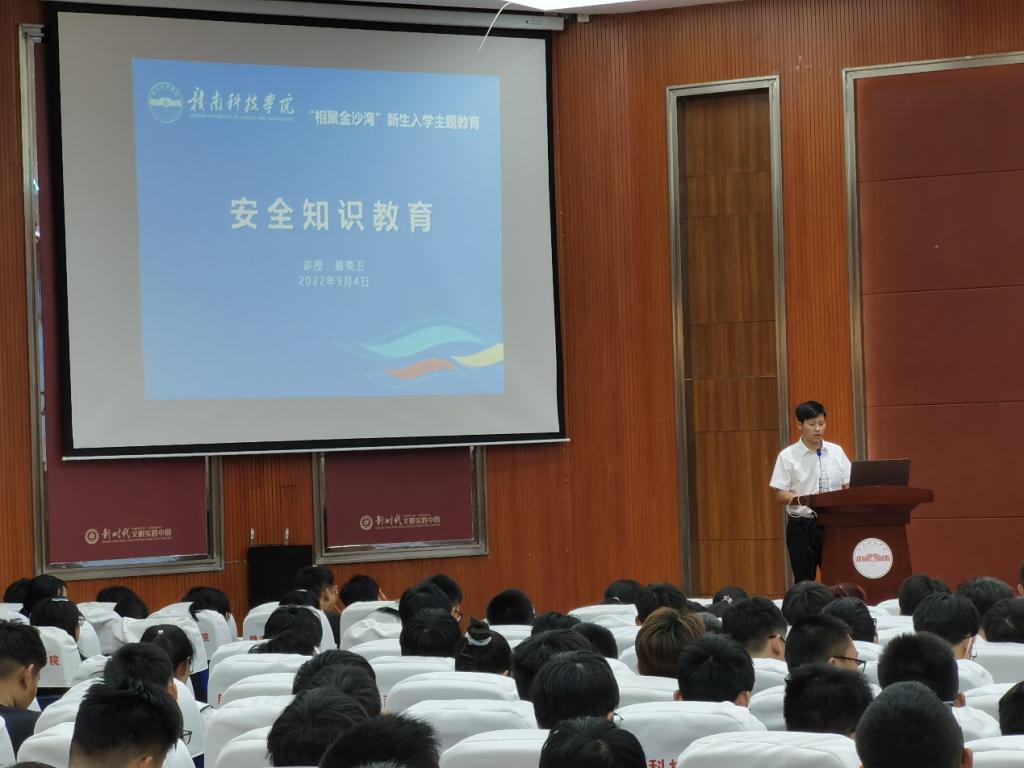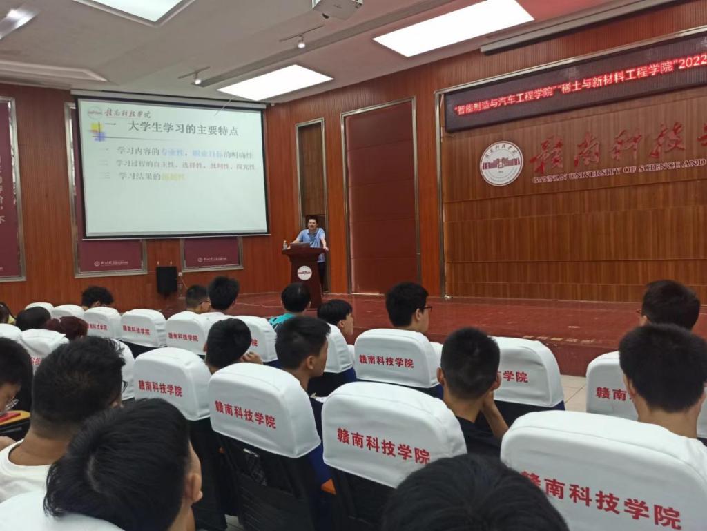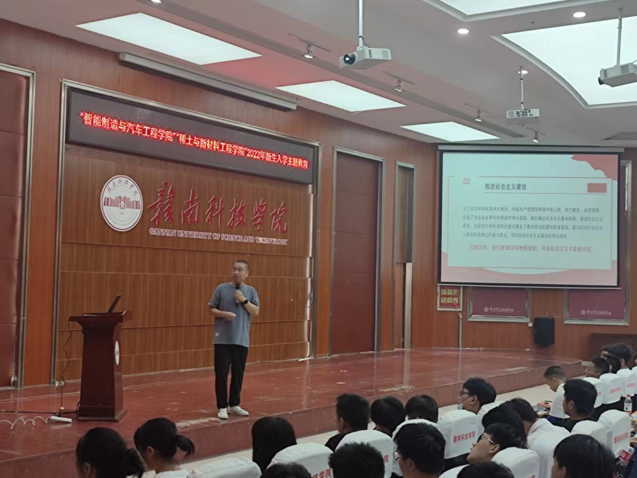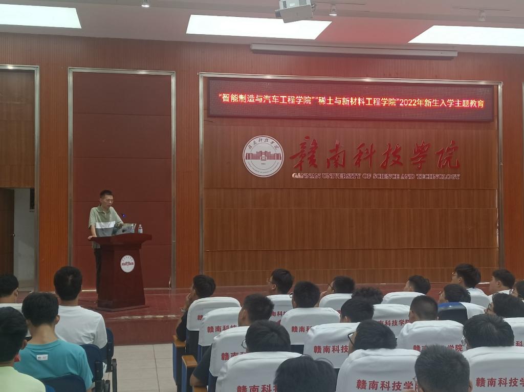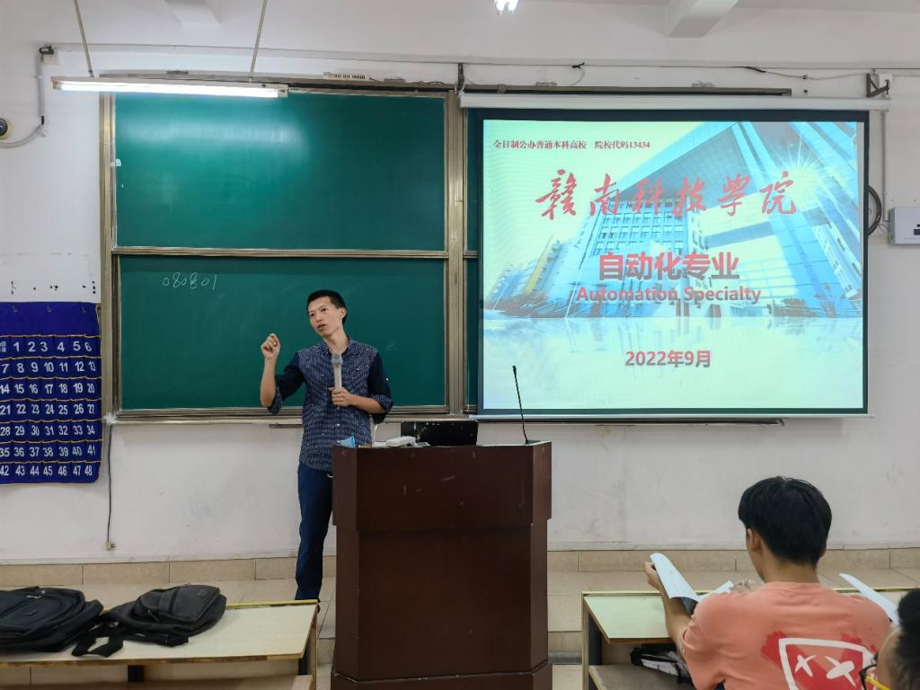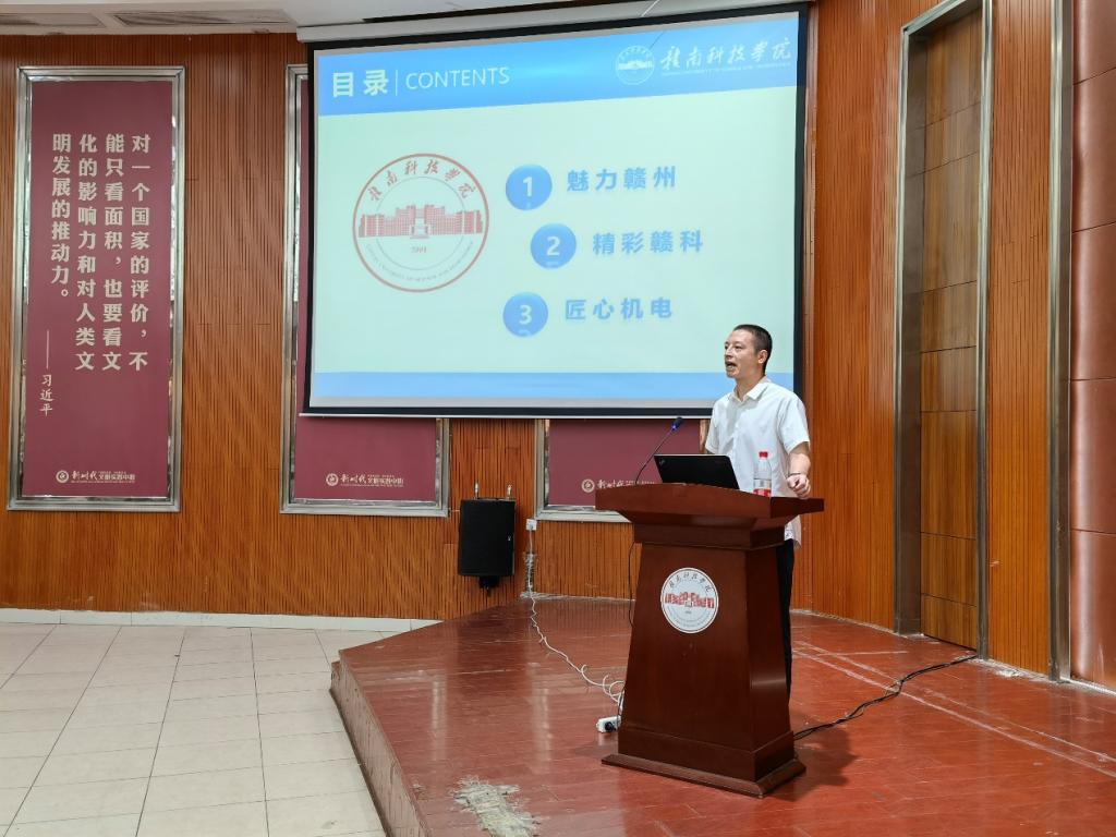 刘辉主任以“魅力赣州,精彩赣科,匠心机电”对22级新生进行了宣讲。他希望同学们在今后的老员工活中严格要求自己,不断努力,在大学中找到自己的人生价值。朱根老师松则对新生开展了党史学习教育,旨在让同学们明白生活在和平、富足的的环境中,身上也肩负着沉甸的责任。其余老师也分别从疫情防控、安全教育、专业建设、教学规划和日常管理等方面向同学们做了宣讲。
