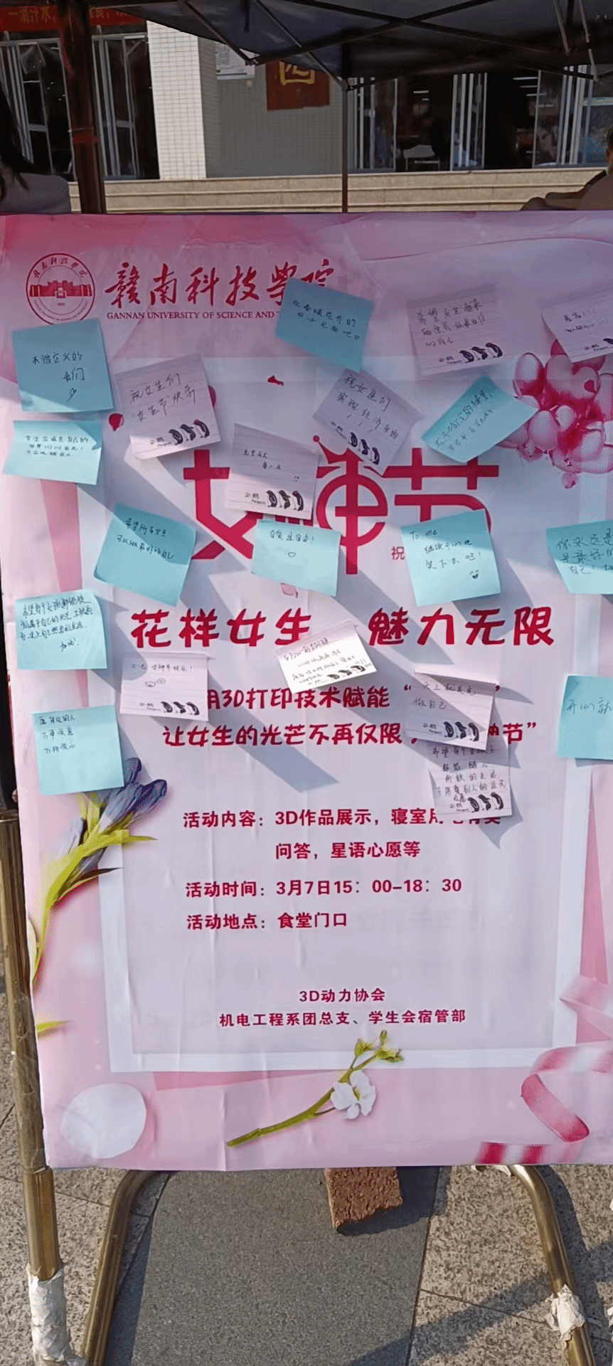 活动当天,“抽纸杯”、“我是指南针”和“寝室用电小问答”等智力小游戏互动环节氛围浓厚、欢声笑语。此外,现场的3D作品展示吸引了不同院系师生的关注和好奇,特别是现场进行的“玫瑰花3D打印”展示,协会工作人员边演示边讲解,立体生动,犹如畅游在一堂科学展示的盛宴之中,收获满满。最后,工作人员邀请了在场的每一位女生参与最后一项活动---“星语心愿”,写下了自己的心愿和祝福,寄语未来,放飞梦想!