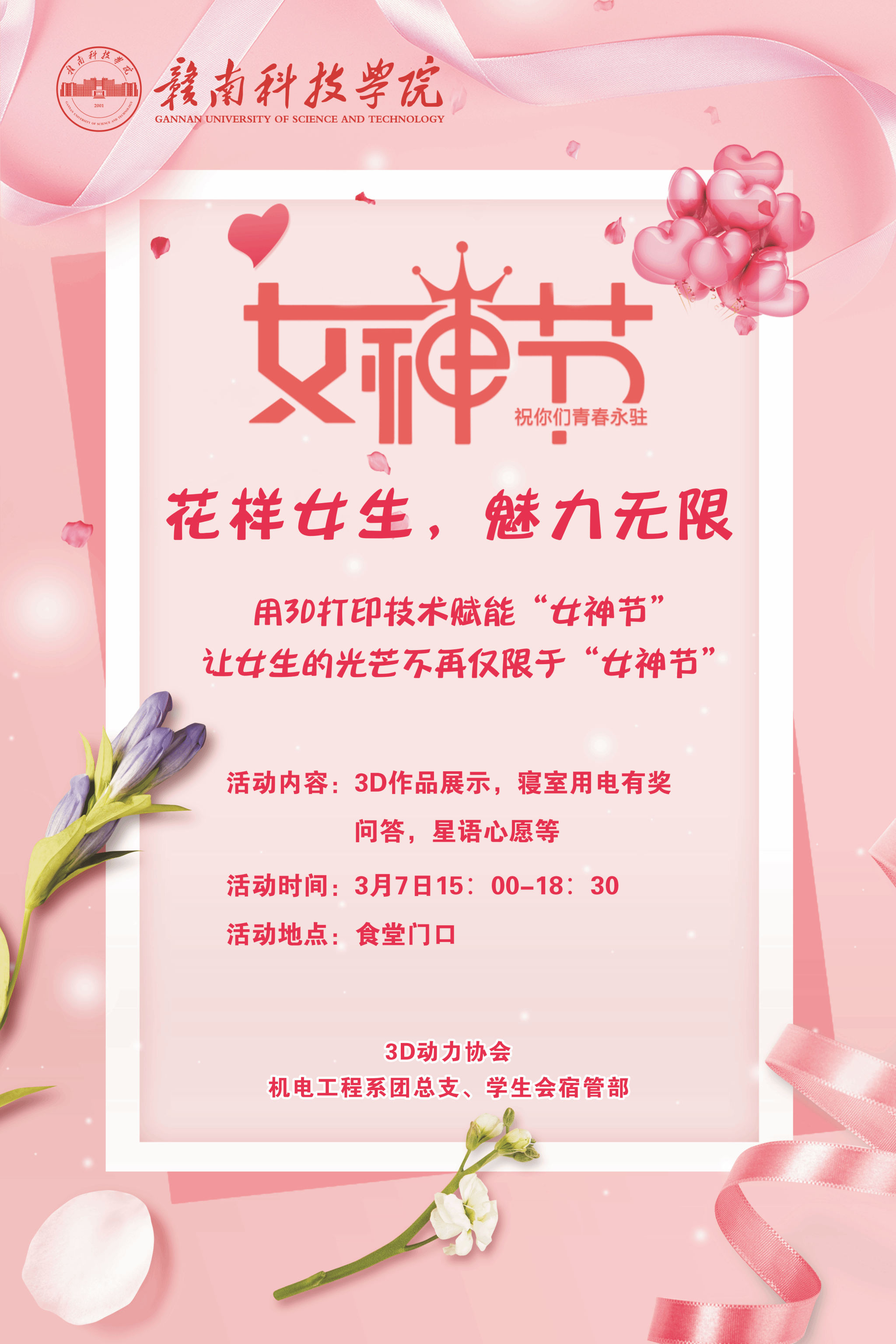 本网讯:春暖花开时,魅力四射日,在这三月和煦的春风里,为丰富校园文化生活,关怀公司广大女生,展现在校女老员工风采,放飞梦想,构建和谐校园。3月7日下午,VSport机电工程系团总支员工会协同3D动力协会为女生们搭建了一个展示自我的舞台,并送上温馨的节日祝福。