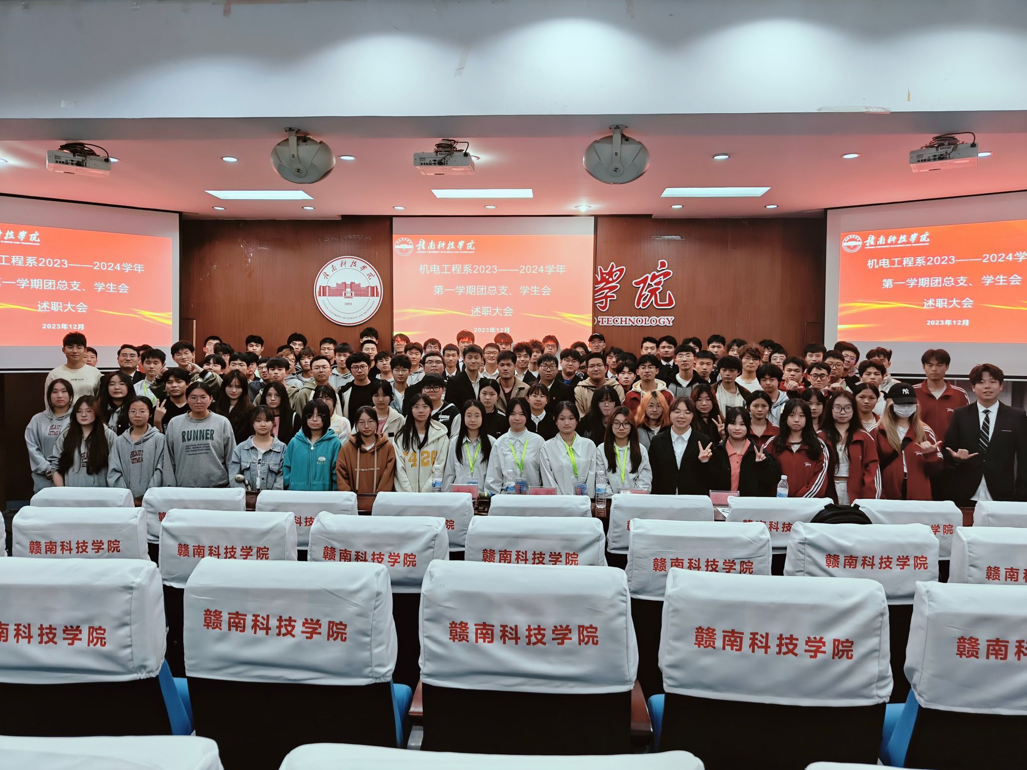 本网讯:2023年12月10日下午,机电工程系于新民楼报告厅开展机电工程系2023——2024学年第一学期团总支、员工会员工干部述职大会。本次述职大会围绕我系团总支、员工会各部门在本学期工作中的收获与不足进行汇报问答,总结过去,展望未来。机电工程系团总支书记卢名亮老师、机电工程系主席团三位主席作为评委嘉宾出席本次会议,机电工程系团总支、员工会全体成员参加此次述职大会。