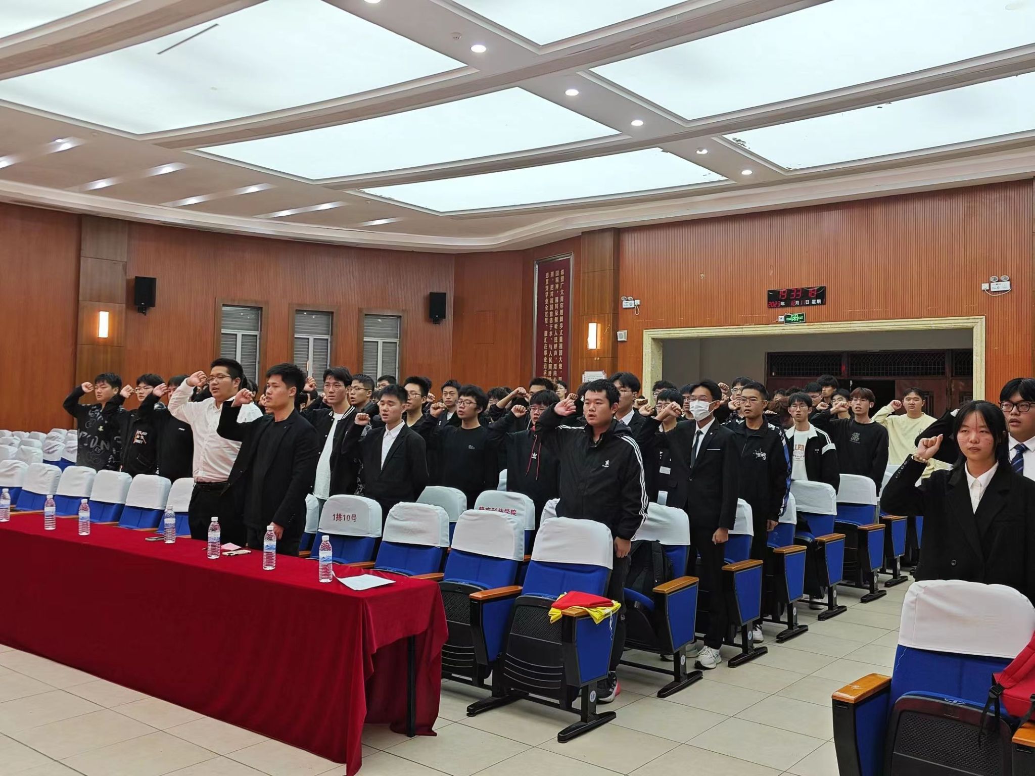 本网讯:为全面落实团省委、省学联的有关要求,深入推进“青年马克思主义者培养工程”,培养和造就一批优秀、拔尖的青年人才,机电工程系团总支、员工会举办青马培训班,同时面向全系招收学员,并于12月11日在图书馆报告厅举行十一期青马班结业典礼暨第十二期开班仪式。两期青马班全体成员参加会议,机电工程系团总支书记卢名亮和机电工程系员工会副主席蒋英明出席本次会议。